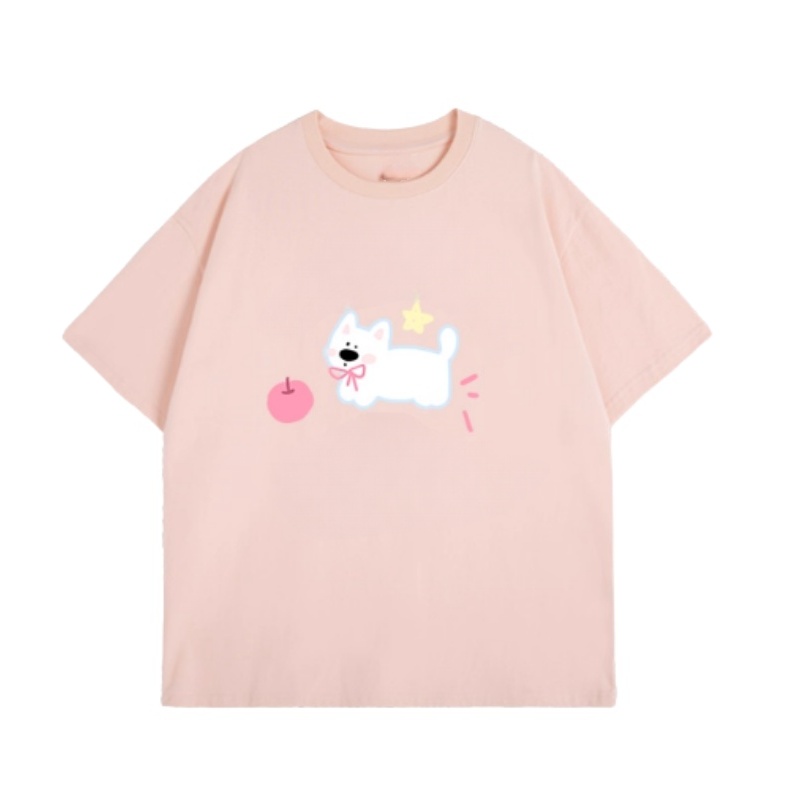 Cute Puppy Print T-Shirt Pink