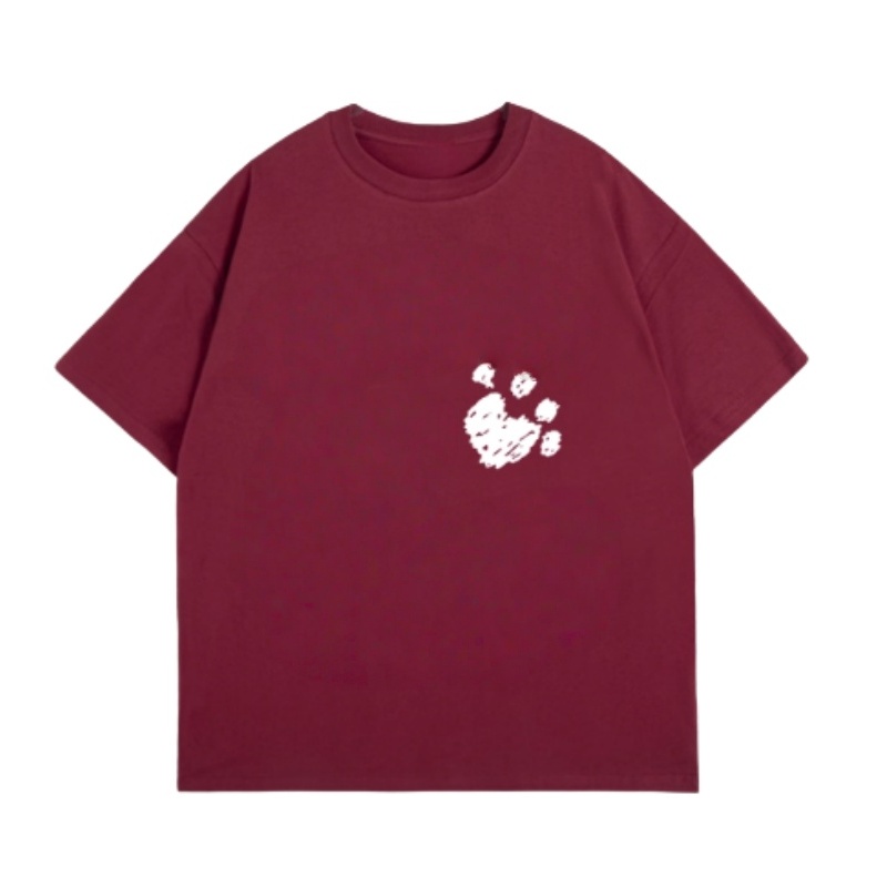 Graffiti Dog Paw Burgundy Fashion T-Shirt